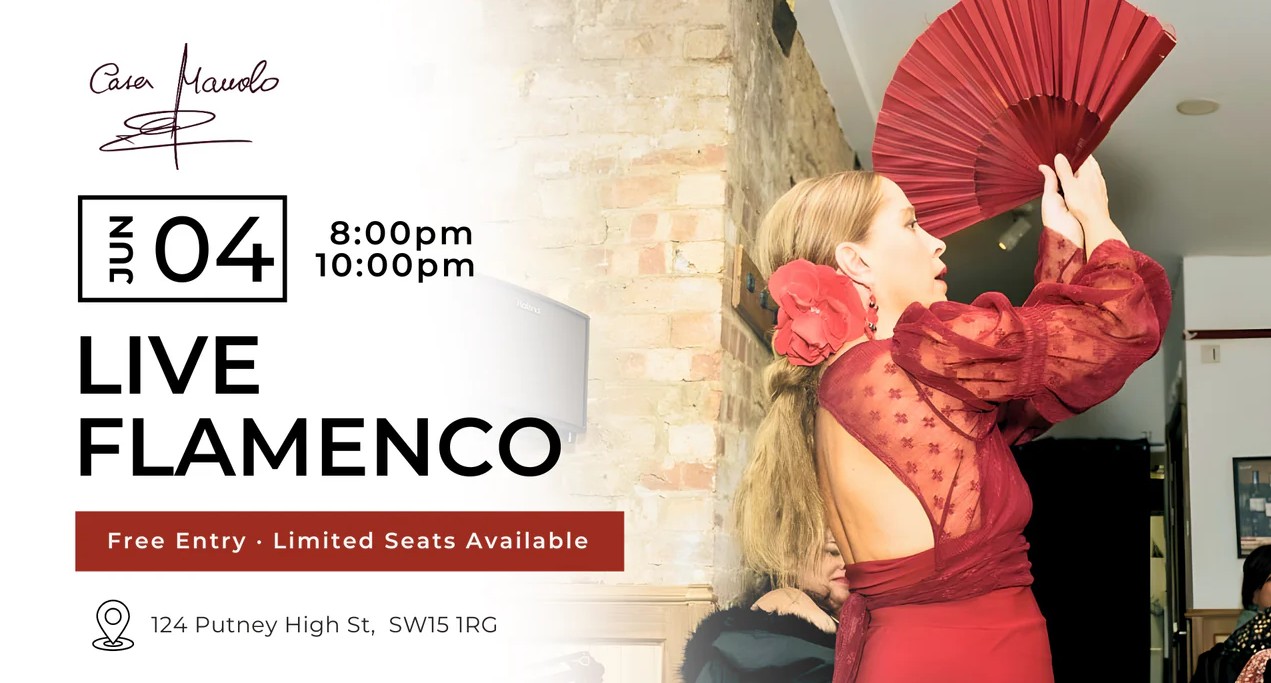 • 5.00-6.30pm: Dance class open to all levels, from complete beginners to professionals. No flamenco shoes needed, just your body and soul.