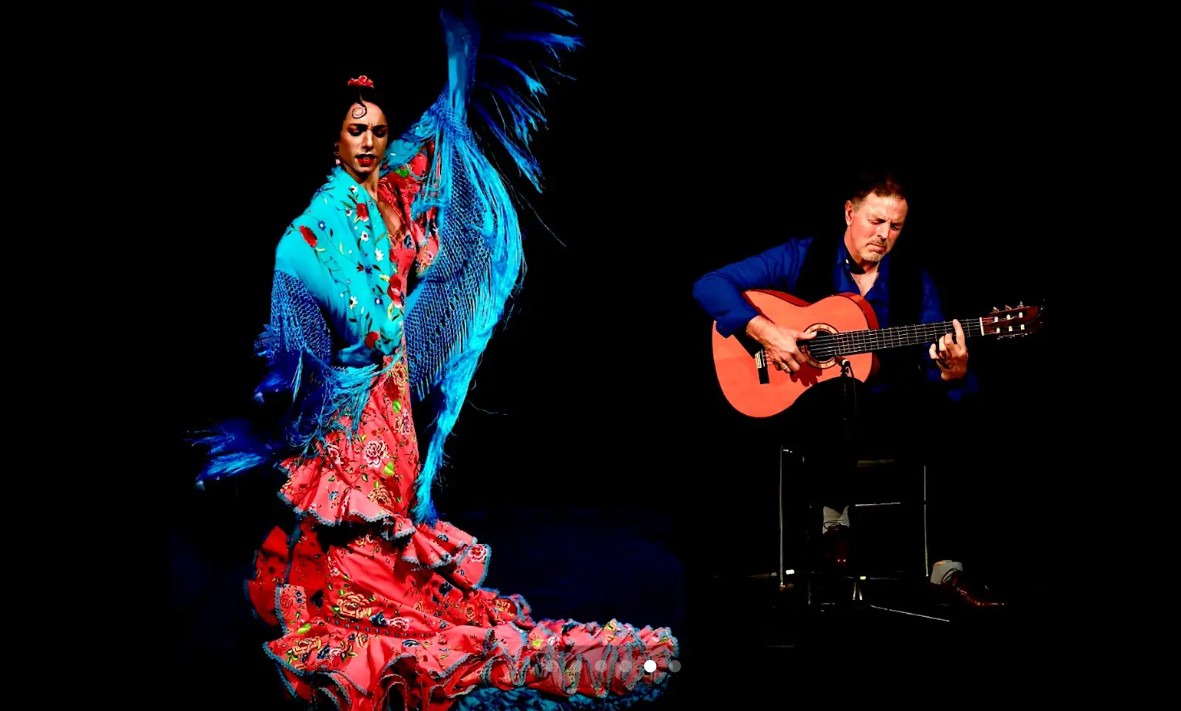 Book a table for dinner with Flamenco Arte3 comprised of dancer/singer Lola Rueda, dancer/singer Carlos Otero and guitarist Tony El Despeinado.